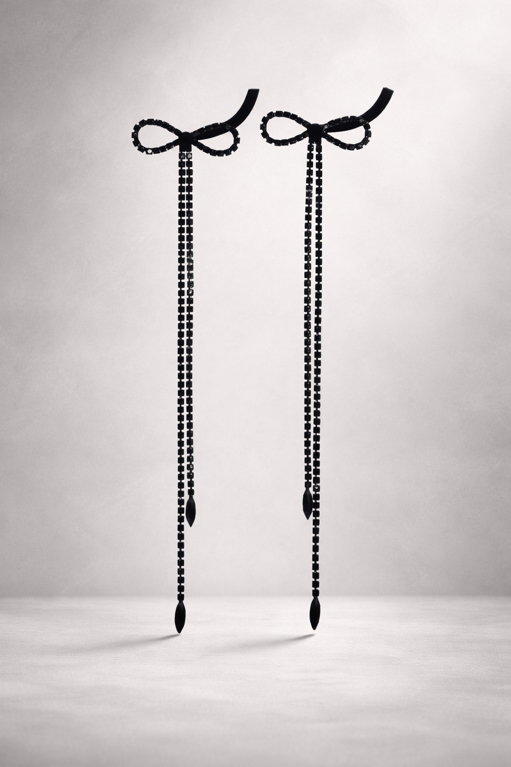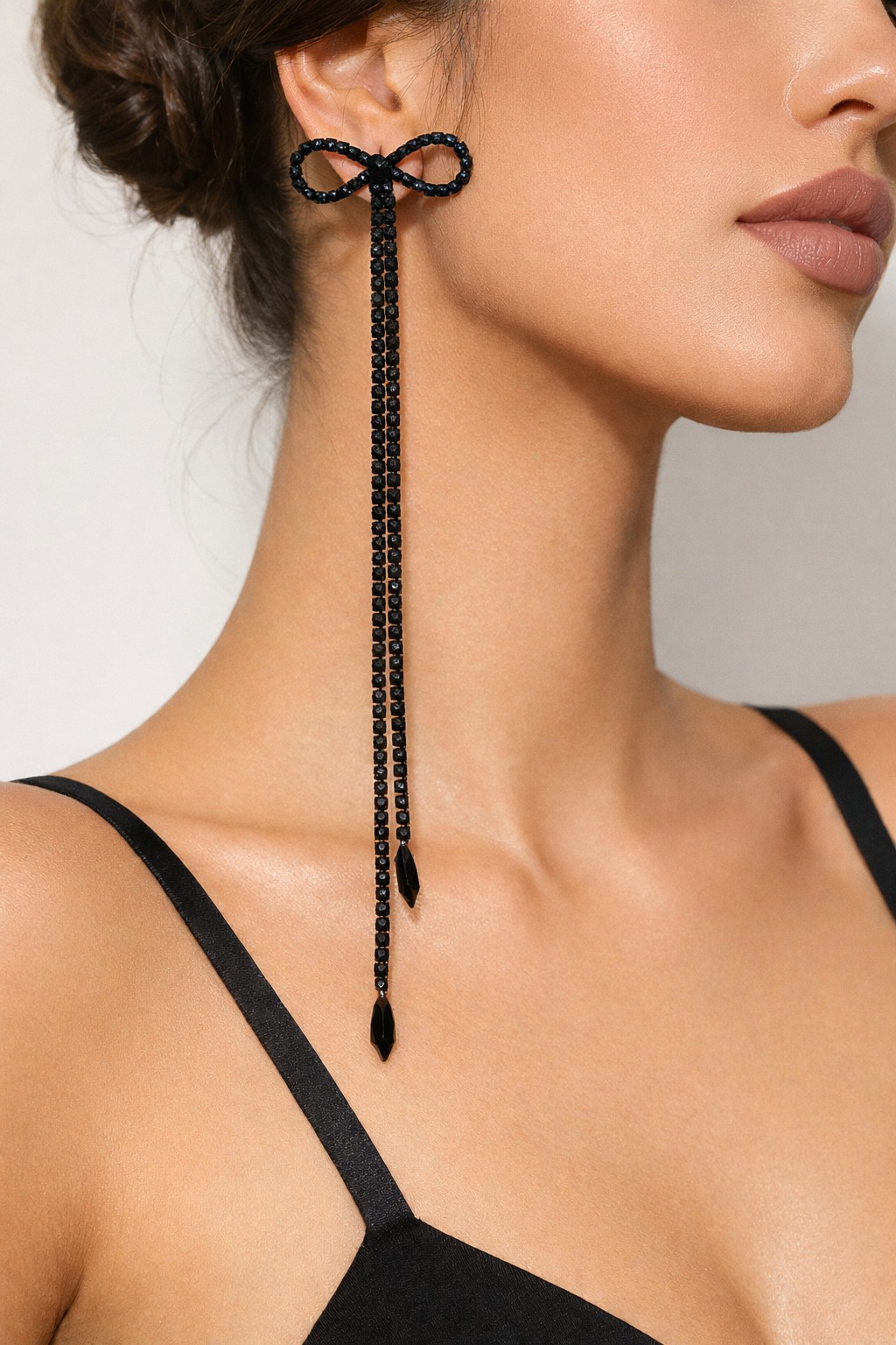 Aretes Lazo Negro Largo Elegante. 15cms de largo, y 3 cms de ancho